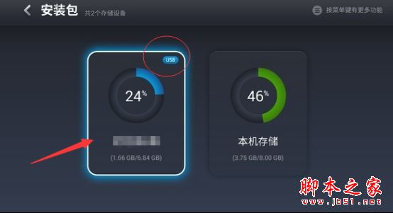 如下圖的提示,點擊“文件管理”之后,打開“安裝包”,找到U盤: