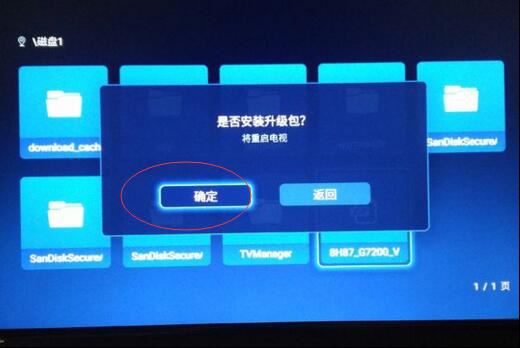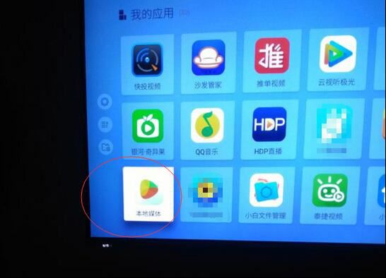 將U盤插入創維酷開電視,打開電視的“本地媒體”,找到U盤里的5.05系統包: