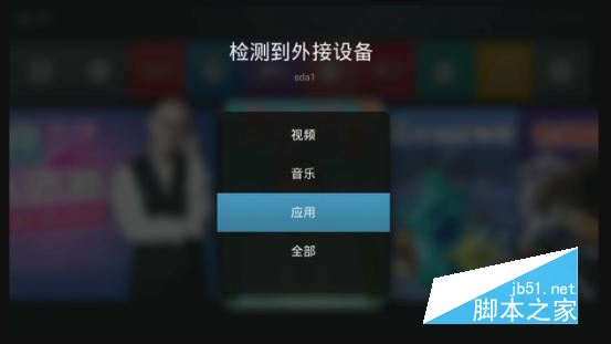 2、把最新的安裝文件轉移到U盤,然后插入天貓魔盒的USB插口,這時魔盒的界面會自動彈出窗口,選擇“應用”即可:
