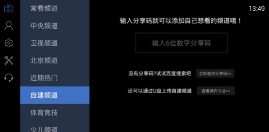 部分直播軟件,采用了“分享碼”這種形式,例如電視家直播軟件,輸入六位數字之后,可以分享收看別人制作好的自建頻道,如港澳臺電視臺、HBO、歐美收費有線電視等。