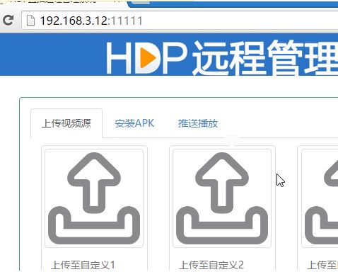 3、在瀏覽器(必須是谷歌、火狐、IE10+瀏覽器三選一)中輸入“http://本機IP地址:11111”,即可進入遠程管理臺(如下圖格式),點擊“上傳至自定義1”,上傳那個寫有直播源的txt文檔即可,后續在打開該軟件時,便能收看文檔里的香港衛視、鳳凰衛視了: