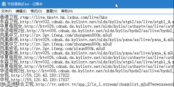1、在相關社區獲取直播源之后,在電腦上新建一個“txt”格式的文檔,把直播源按照“名字+逗號+地址”的形式放在文本文檔(如下圖):