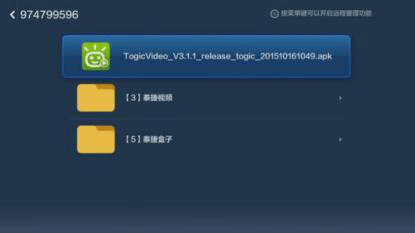 2、在U盤(pán)中找到剛才下載的泰捷視頻最新安裝包,選中之后,按遙控器確認(rèn)鍵,進(jìn)行安裝: