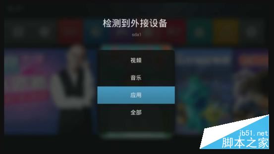 2、將下載好的文件轉移到U盤,然后將U盤插入到天貓魔盒3pro的USB接口,這時電視屏幕會自動彈出提示窗口,請點擊“應用”:
