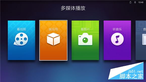 如果說系統沒有自動檢測到U盤,小編還有一妙計可解決該問題,請打開主界面的“應用”,點擊“多媒體播放”,找到你的U盤設備,點開之后,就能發現下載好的泰捷視頻安裝文件,點擊安裝即可(如下圖):