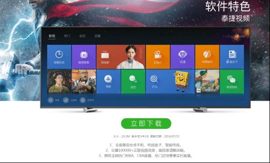 泰捷視頻擁有眾多正版獨家資源,總數超過20萬,近期的熱播劇如《麻雀》(獨家首播)、《小別離》、《幻城》、《誅仙·青云志》、《麻辣變形記》,電影《大唐玄奘》、《老炮兒》等,都在泰捷視頻獨家首播或獨播,喜歡的朋友請趕快下載觀看!