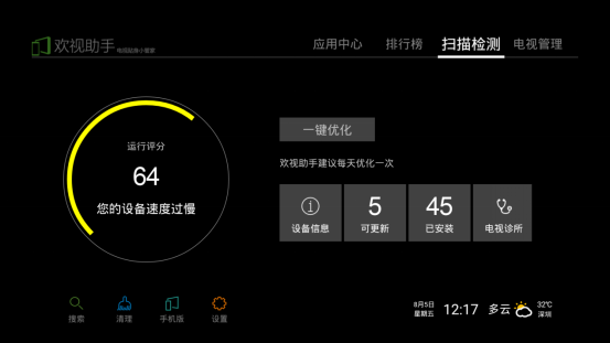 是一款簡單易用的專業(yè)電視管理軟件,適用于各大品牌智能電視及網絡機頂盒,具備垃圾一鍵清理、應用批量卸載、網絡速度監(jiān)測、防蹭網、外接設備檢測等實用功能。同時提供最好用、最好玩的電視軟件,讓你看大片、玩游戲,一爽到底。