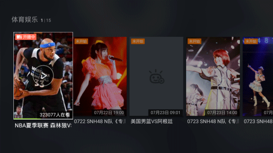 “體育娛樂”板塊的獨家播放版權的NBA、CBA直播,足球直播。現在正好是NBA的夏季聯賽哦,打開體育娛樂板塊還能看到未來一段時間的節目播放列表時間,可以定鬧鈴提示我們不要錯過賽事。