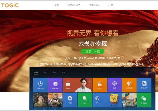 云視聽.泰捷下載地址:http://www.togic.com/livetv.html