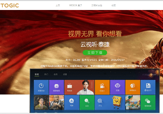 泰捷視頻下載地址:http://www.togic.com/livetv.html