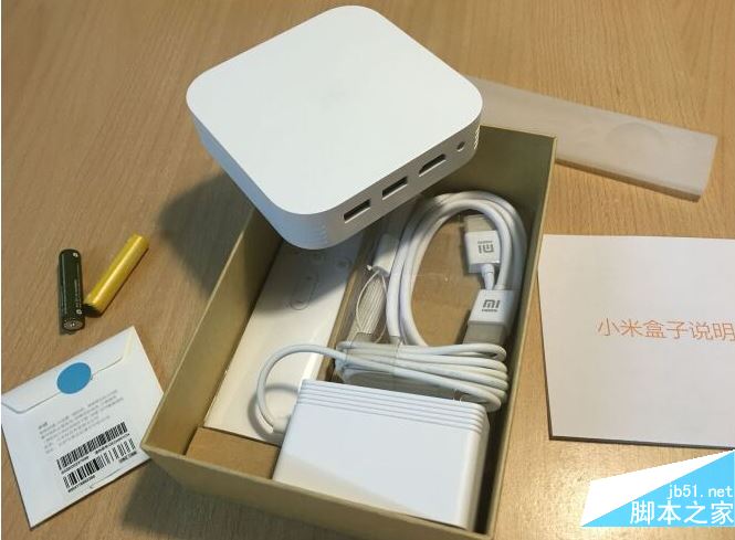 你剛買到盒子,首先就要檢查配件是否齊全了。總共有5樣東西,少了就趕緊退貨了,沒準你這機子是誰用了再賣給你的呢!配件有:小米盒子,小米電源適配器,小米藍牙遙控器,HDMI線,7號電池(外加一份說明說書)。那么我就開始解說怎么連接上電視了。