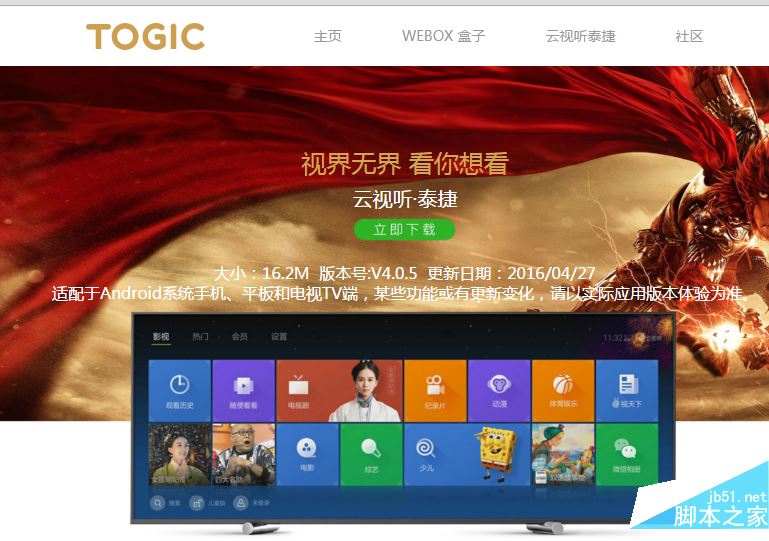 泰捷視頻下載地址:http://www.togic.com/livetv.html