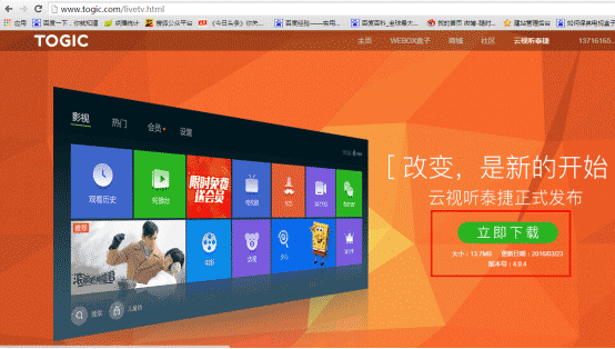 第四步:安裝完后,返回到盒子系統桌面,找到“云視聽.泰捷”這個圖標打開后就可以看海量的電視節目了。