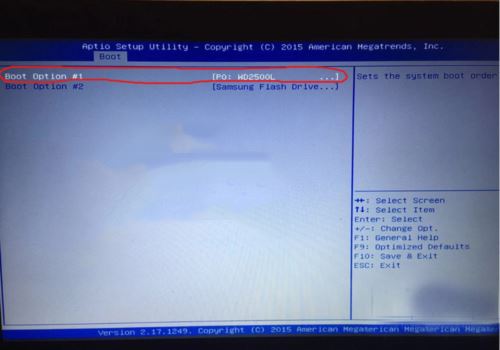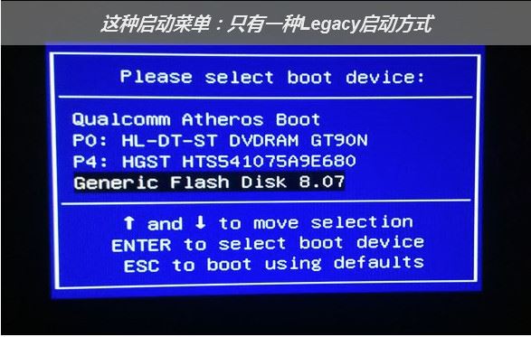 當您的機器(老機器)只支持Legacy時,在這個主板的啟動項中就只會出現(xiàn)一個U盤的選項: