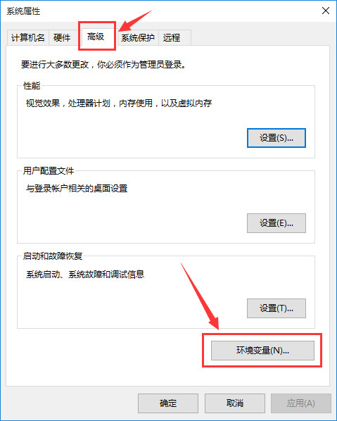 在這個(gè)界面,我們選擇“高級(jí)”選項(xiàng)卡,然后選擇下面的“環(huán)境變量”,點(diǎn)擊進(jìn)去,如下圖所示: