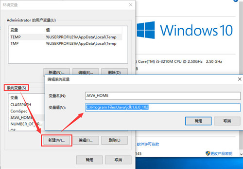 變量名填寫(xiě)JAVA_HOME,變量值填寫(xiě)JDK的安裝路徑,比如小編的安裝目錄是C:/Program Files/Java/jdk1.8.0_102,填好后點(diǎn)擊“確定”。