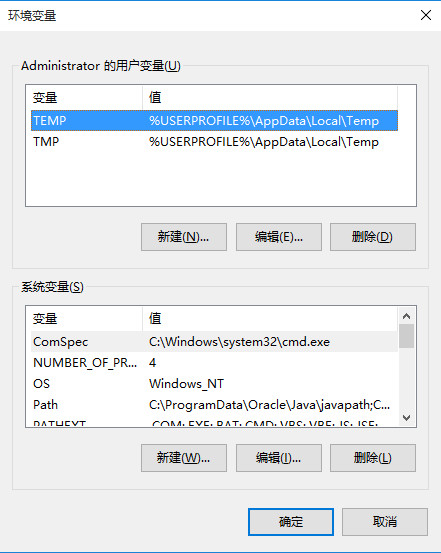 這樣,我們就打開(kāi)“環(huán)境變量”配置界面了,具體配置過(guò)程如下: