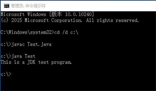 如果屏幕上返回出This is a JDKtest program.則表示環(huán)境變量配置成功,如下圖所示:
