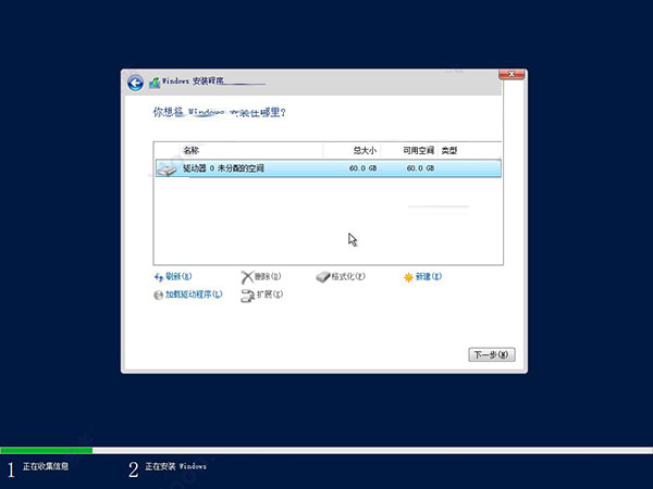 ①點(diǎn)擊“新建”按鈕新建分區(qū)