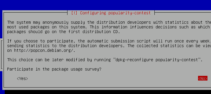 選擇 NO 統計軟件包流行度的。會定期上報本機安裝了哪些軟件包。