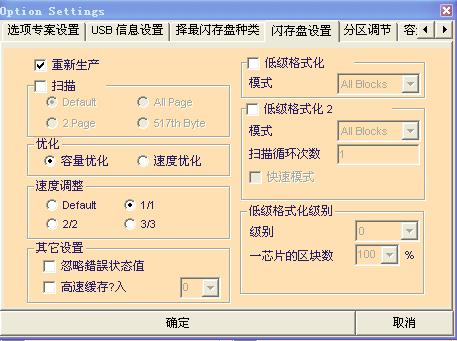 然后選擇閃存盤設置:選中"重新生產",速度調整選擇"1/1"如圖: