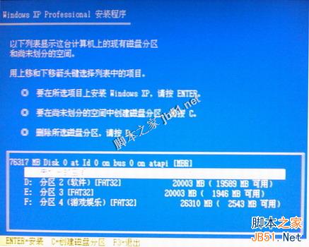 8、分區。到此界面時,首先亮條默認在C分區上,此時我們按D鍵,即刪除了所選的分區。(由于刪除分區會使您硬盤上C分區的數據將全部丟失,而且該操作無法還原。所以建議您在有專業人士在場的情況下進行。)