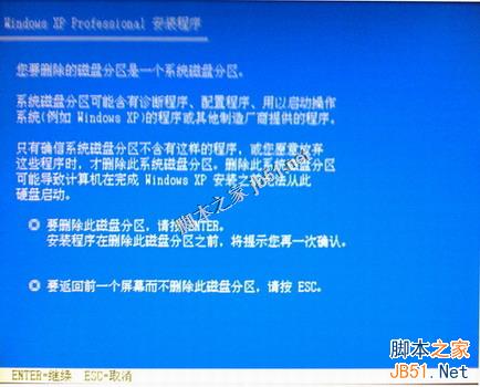 按D鍵刪除分區后,屏幕會有提示,要刪除此分區,請按ENTER鍵,如下圖: