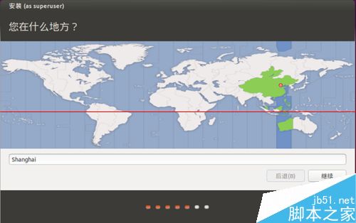 安裝程序會(huì)自動(dòng)確定我們所在的時(shí)區(qū)。如果與事實(shí)不符,可以方便地點(diǎn)擊地圖上的任何地方,重新設(shè)置時(shí)區(qū)。