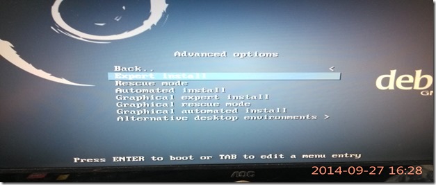 直接進入的系統的安裝界面,安裝有多個選項,最簡單直接的的就是一路直接默認下去,這是最便捷。我這里選擇的是Advanced option