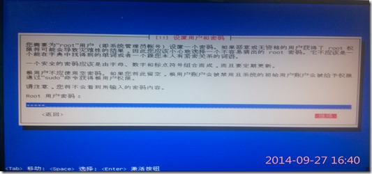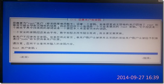 設置root賬號和密碼,你可以在這里添加普通用戶也可以在安裝完成之后在添加。