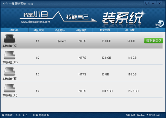第二步:選擇系統安裝的磁盤分區,一般為你的C盤目錄,也就是你當前系統的所在目錄