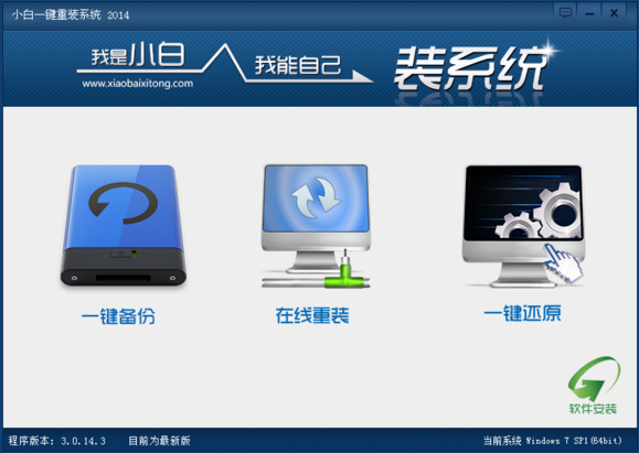 第一步:下載XiaobaiOnekey_V3.0.exe軟件雙擊打開如下圖,然后點擊在線重裝
