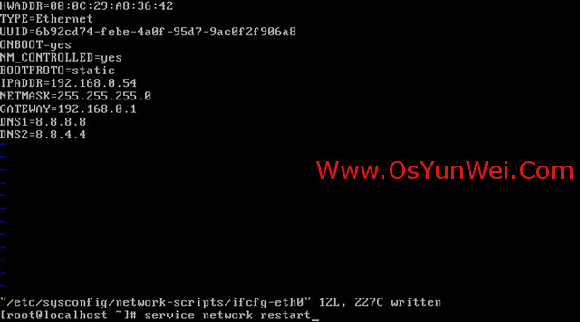 vi /etc/sysconfig/network-scripts/ifcfg-eth0 #編輯配置文件,添加修改以下內容