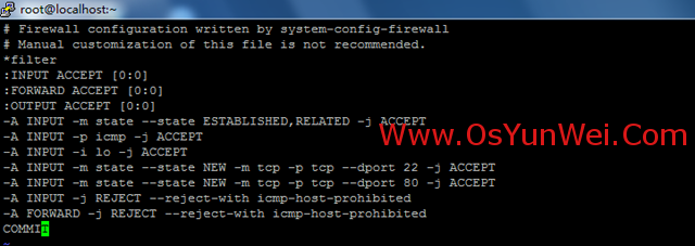 vi /etc/sysconfig/iptables #配置防火墻,開啟80端口