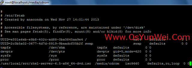 /usr/local/src/rhel-server-6.5-x86_64-dvd.iso /media/cdrom iso9660 defaults,ro,loop 0 0