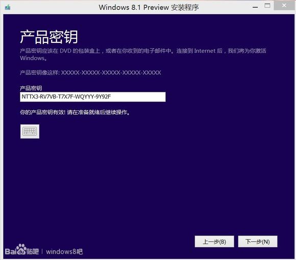 如圖,填入如圖密鑰即可。然后系統(tǒng)會檢測可行性,提示有效。點(diǎn)擊下一步即可。