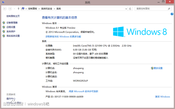 最后再上一張系統(tǒng)概況圖,已經(jīng)激活。此時已經(jīng)大功告成,可以盡情體驗(yàn)最新的8.1了!