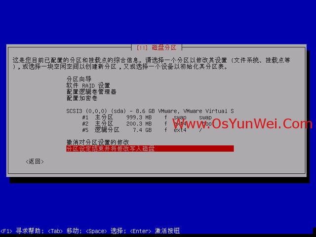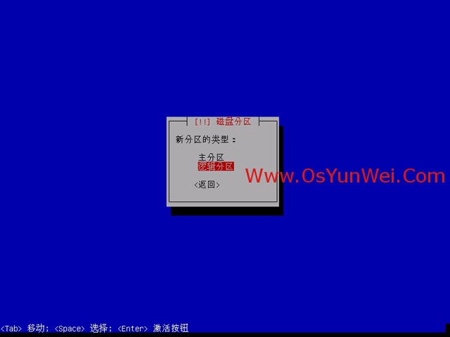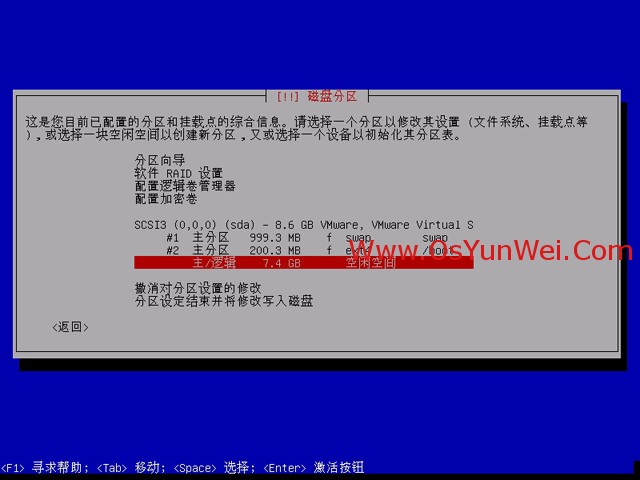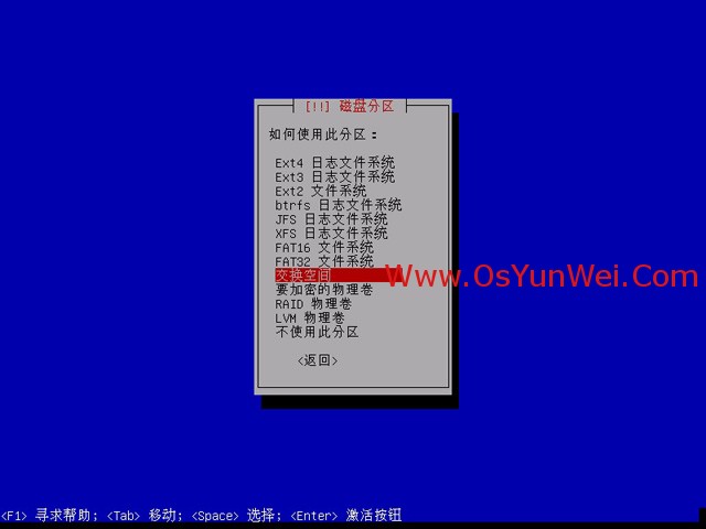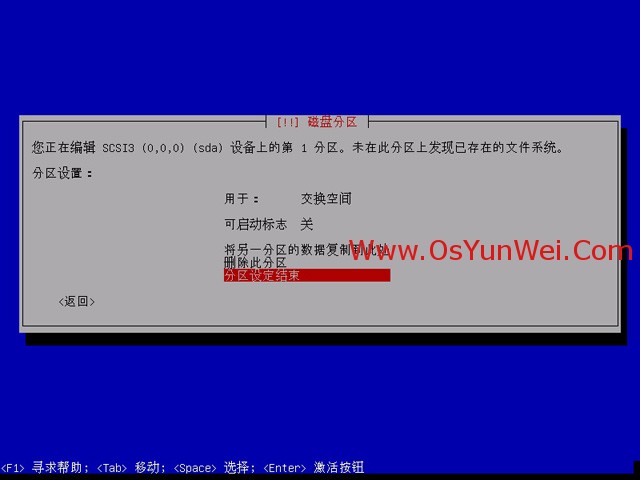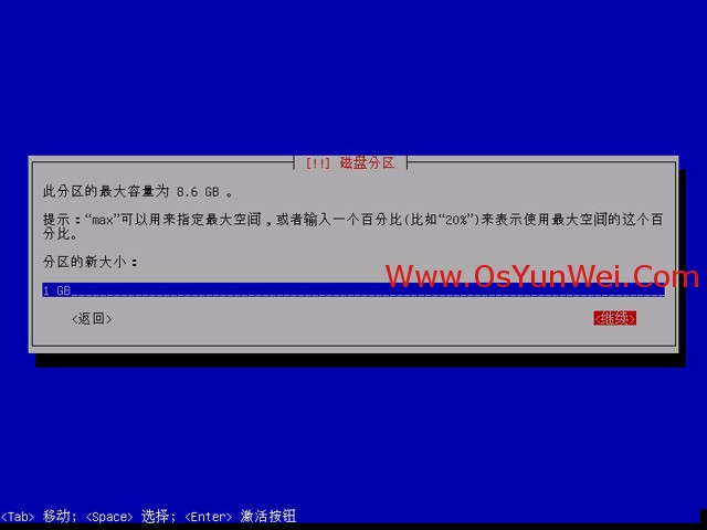 輸入分區大小:1GB 注意:交換空間的大小一般為物理內存的2倍