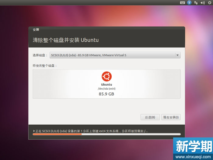 之后會(huì)設(shè)置計(jì)算機(jī)和帳號(hào)信息,這里以“xinxueqi.com”為例,用戶名為“xinxueqi”,密碼為“123456”。設(shè)置完成后單擊“繼續(xù)”,等待安裝過(guò)程結(jié)束。