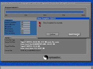 第十七步:.等待恢復完成后,Ghost會提示你:克隆復制的過程完成,選擇繼續或重新啟動計算機,這里選擇“Reset Computer 重啟”