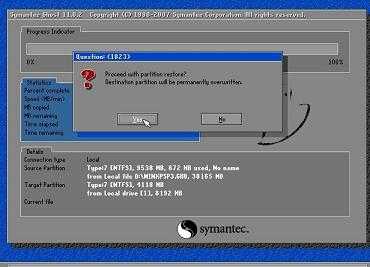 第十五步:當彈出對話框,要求選擇Yes或No時,選擇Yes,詢問的意思是:鏡像文件將按您的設定恢復到C盤