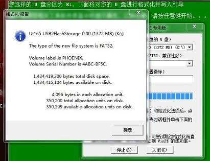 第四步:當系統格式化進程結束后,會彈出本次格式化的一些數據結果,這表示您的格式化已經成功,直接點擊“確定”