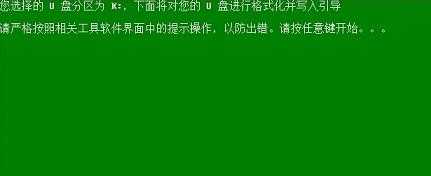 第三步:下面將對您選擇的U盤進行格式化操作了(注意:確保您使用的U盤上沒有重要的數據,格式化之后,先前的所有數據將會丟失),根據提示直接按任意鍵就可以開始格式化