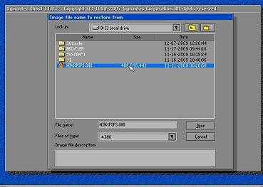 第十四步:在目錄中找到您存儲到U盤或指定文件夾的系統鏡像文件,如:WINXPSP3.GHO,雙擊該文件或按下“Open”鍵,一路按“回車”鍵或選擇“OK”