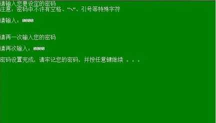 第七步:根據中文提示,系統要求為您的引導U盤設置一個啟動密碼(隨便輸入如:0000,這個步驟必不可少,不管您愿不愿意,都得輸入一串密碼的,否則無法繼續操作),確保兩次輸入一致,牢記密碼就可以了,還是任意鍵繼續操作
