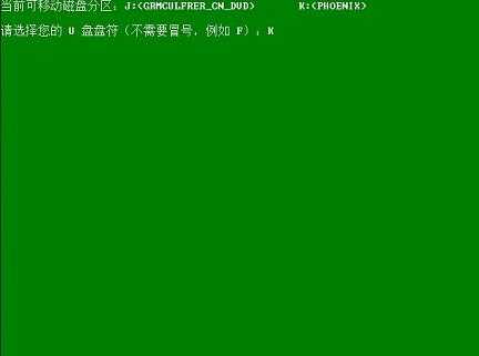 第二步:接下來假如您的電腦上有兩個或兩個以上的可移動磁盤,則系統將詢問您選擇使用哪一個盤符進行安裝制作,這里很明顯應該使用第二個,所以輸入盤符:“K”,按下回車