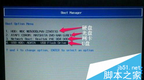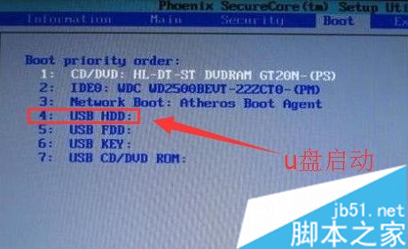 3、按F10保存修改退出,重啟電腦,按【F12】調出啟動項選擇菜單,選擇USB HDD回車即可U盤啟動。