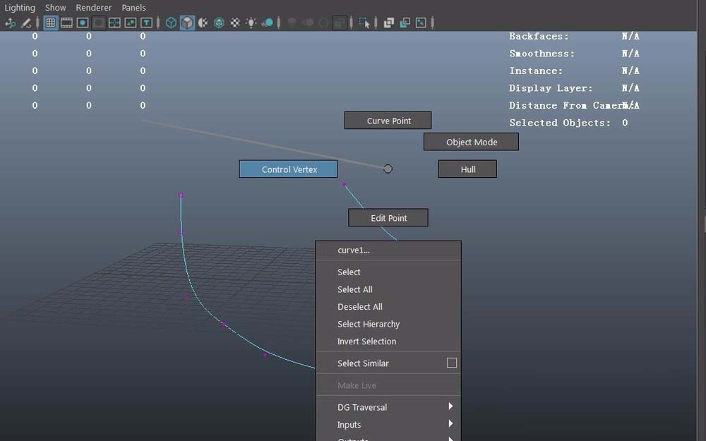 4、在屏幕右鍵,選擇控制點(diǎn)control vertex
