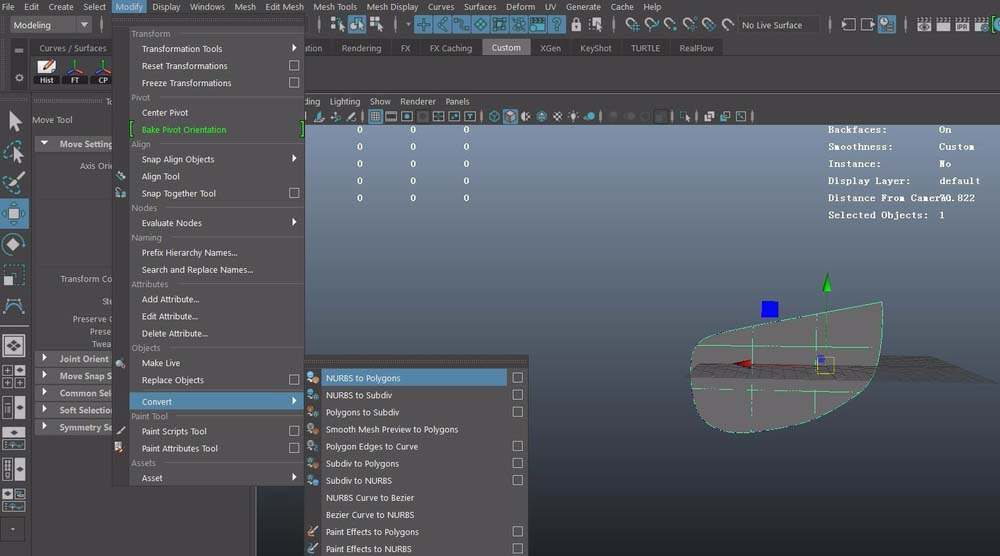 7、這時(shí)會(huì)生成一個(gè)片,然后執(zhí)行刪除歷史,這樣就不會(huì)再受影響;可以在調(diào)節(jié)完成后再執(zhí)行這一步,選中模型,執(zhí)行下面操作將模型轉(zhuǎn)化為polygons,就可以進(jìn)行點(diǎn)線面的編輯了