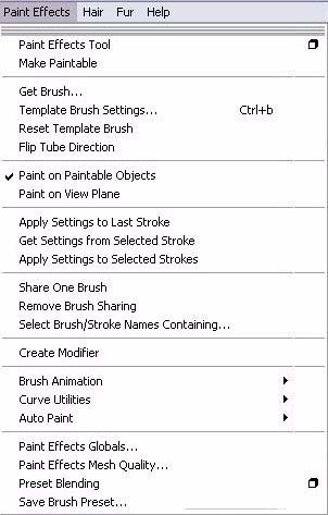 2、現(xiàn)在,熟悉一下Paint Effects,下圖顯示了Paint Effects shell的界面。